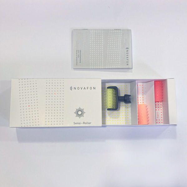 El conjunto de tres rollers sensoriales Novafon se desarrolló para estimular la sensibilidad de la superficie y la profundidad. De esta forma, se combinan dos métodos de tratamiento: las vibraciones del dispositivo de ondas de sonido NOVAFON para el alivio del dolor y la estimulación de las capas superiores de la piel para activar la circulación sanguínea. Estos accesorios tienen un efecto comparable a un masaje con bola de erizo.