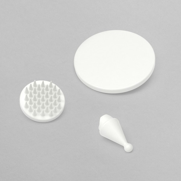 El set de rehabilitación de Novafon incluye 3 accesorios el accesorio de cono, de erizo y  de placa XL. Son una extensión de los accesorios existentes del nuevo NOVAFON. Ofrecen una variedad de usos: una aplicación muy selectiva y precisa (accesorio de cono), una aplicación particularmente estimulante (accesorio de erizo) o el tratamiento de grandes Ôreas del cuerpo como la espalda o el muslo (accesorio de placa XL).