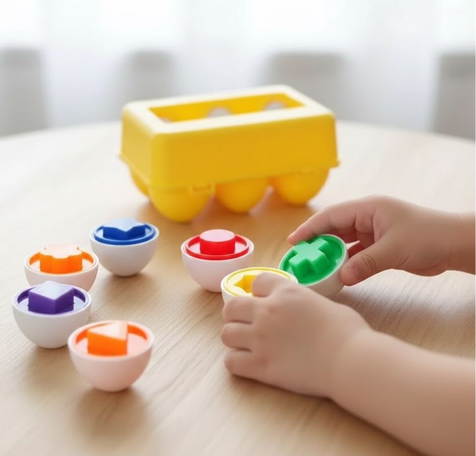 Estos juguetes Montessori están diseñados para estimular el aprendizaje temprano a través del juego. Los huevos educativos permiten a los niños identificar colores y formas mientras practican la clasificación y el encaje correcto de las piezas.