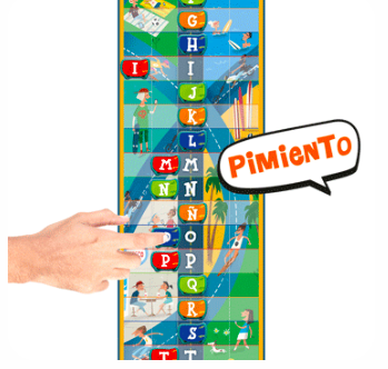 El primer equipo que saque del tablero ocho fichas de letras gana la partida de este juego educativo.