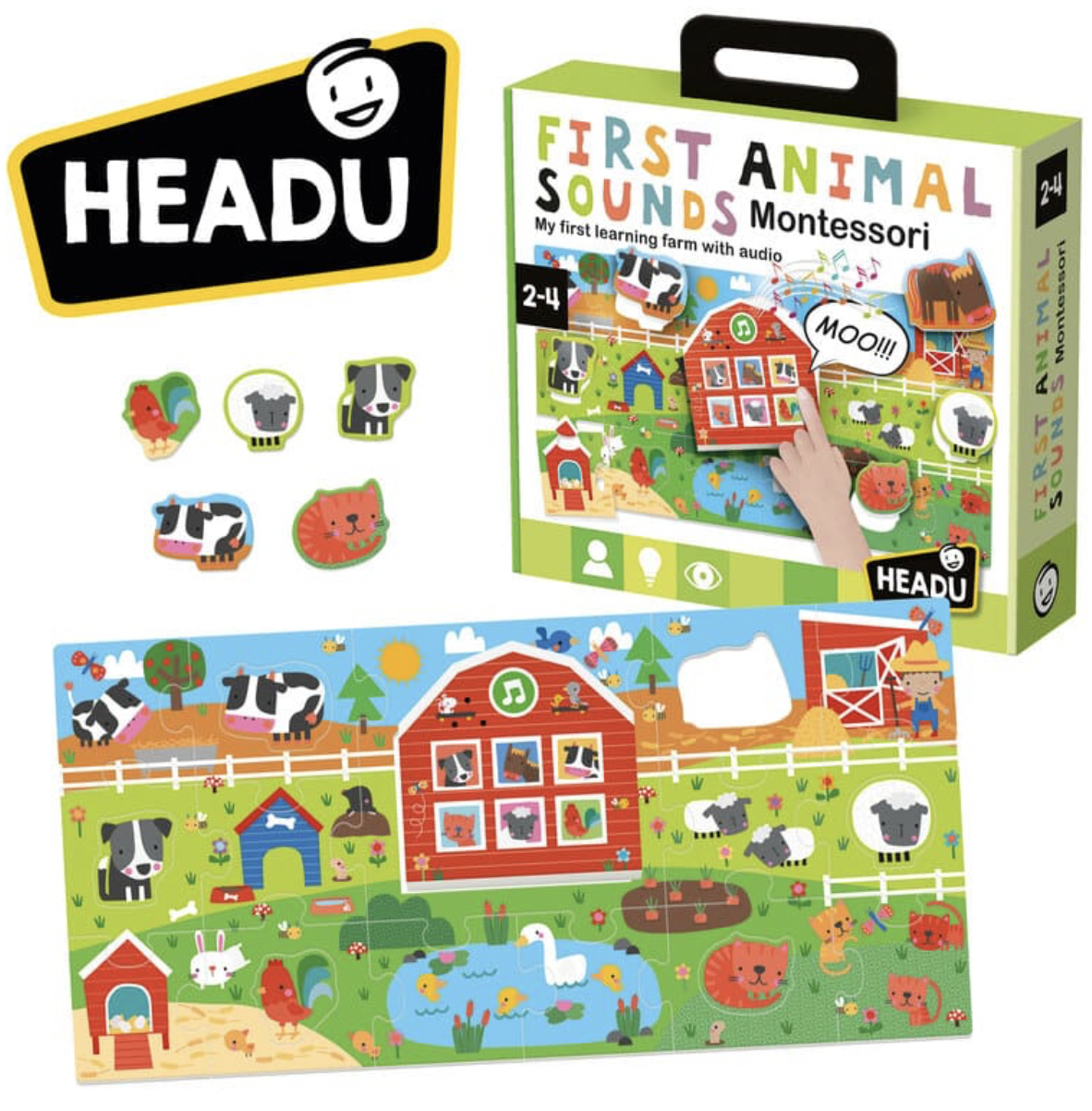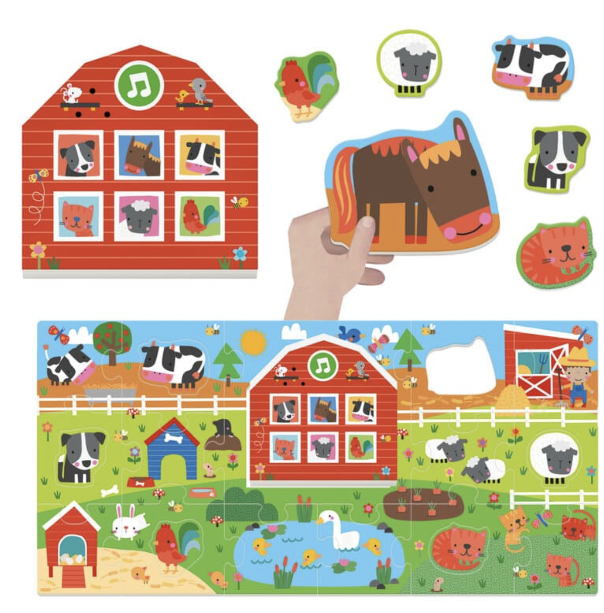 ยฟCรณmo suena un caballo? ยกEscucha con atenciรณn! Y la vacaโฆ ยฟcรณmo lo hace la vaca? Con este juego los niรฑos asocian los animales con sus sonidos, ademรกs de asociarlos con las formas del rompecabezas creando el escenario de una granja.