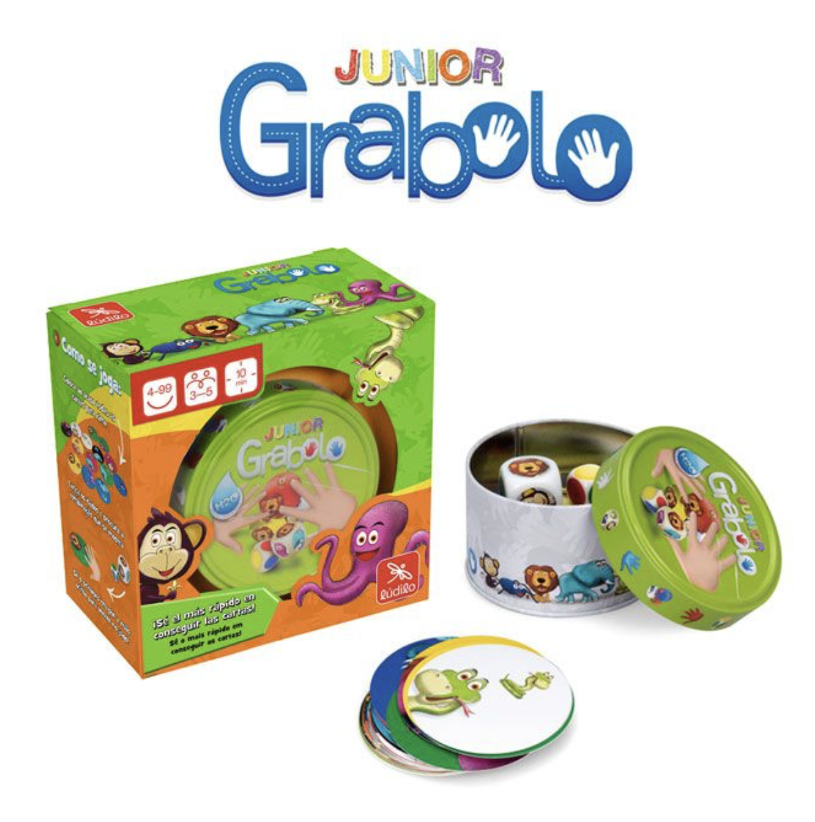 Grabolo es una divertida colecciรณn de juegos de cartas de rapidez y observaciรณn en la que los jugadores deberรกn demostrar su agilidad visual y reflejos. A travรฉs de una mecรกnica sencilla y dinรกmica, los dados indican una combinaciรณn (color + nรบmero, animal o personaje, segรบn la versiรณn) que los jugadores deben localizar lo mรกs rรกpido posible entre las cartas para conseguirla.