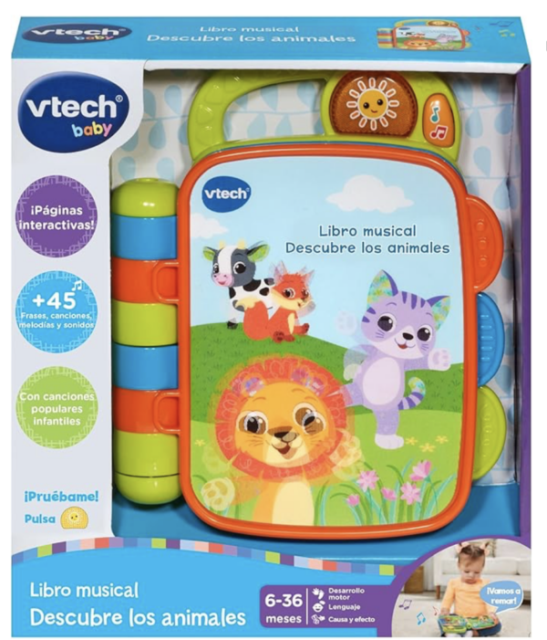 ยกCanta y aprende con tus amigos los animales! Este adorable libro de animales es perfecto para que los mรกs peques exploren y aprendan. El botรณn luminoso enseรฑa animales y sus sonidos en cada pรกgina. El botรณn musical activa divertidas melodรญas para que los peques se muevan mientras juegan.