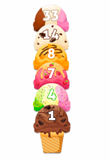 Cada jugador empieza con 1 cono y 1 bola de helado. Las demรกs bolas estรกn numeradas del 2 al 49 y se colocan bocabajo en la mesa.Los jugadores por turnos, darรกn la vuelta a una bola y decidirรกn si la aรฑaden a su helado, o la vuelven a dejar boca abajo en su sitio.Solo pueden aรฑadir una bola a su helado, si el valor de รฉsta es superior a la รบltima bola que tienen en su helado, hasta conseguir un helado de 10 bolas