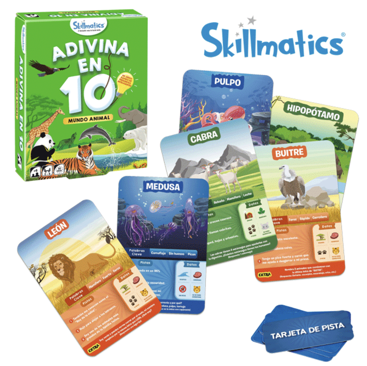 ยกPrepรกrate para el juego de preguntas mรกs emocionante! Hasta 10 preguntas para adivinar el animal de la Tarjeta de Juego. ยฟEs carnรญvoro? ยฟEs un animal domรฉstico? ยฟVive en grupo? Piensa bien, haz preguntas inteligentes, utiliza las tarjetas de pista y ยกsรฉ el primero en conseguir las 7 tarjetas!
