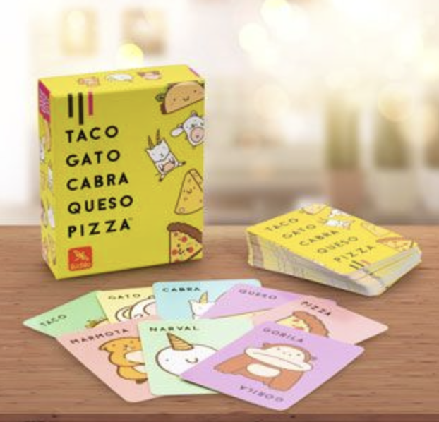 En Taco gato cabra queso pizza debes ser el mรกs rรกpido. Cuando un jugador se descarte de una carta que coincida con la palabra que dice, coloca tu mano sobre el montรณn central, ยกel รบltimo en poner la mano se queda con todas las cartas del montรณn! Concรฉntrate y sรฉ el mรกs rรกpido en deshacerte de todas tus cartas. La diversiรณn estรก garantizada con este frenรฉtico y divertido juego de cartas.